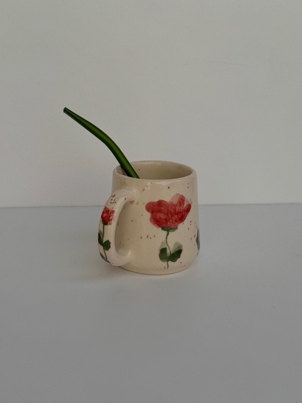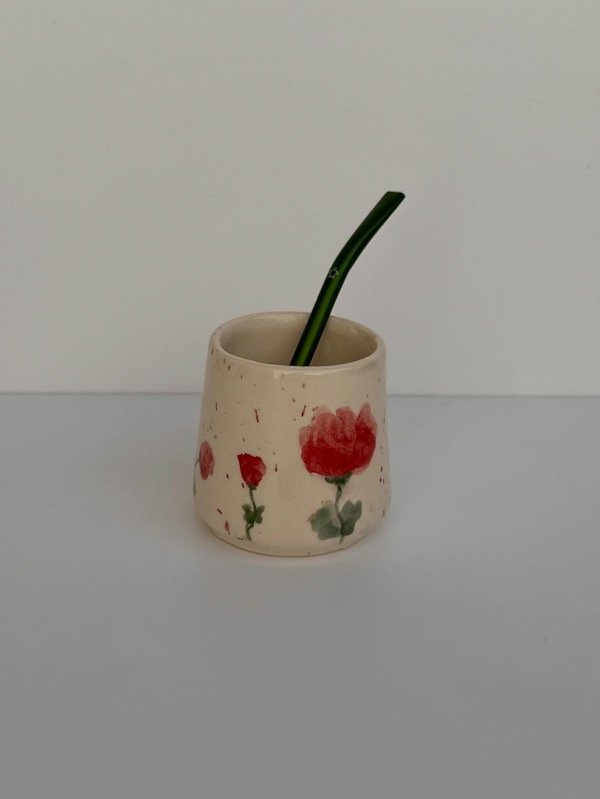 Mate con flores pintadas a mano tipo acuarela y bombilla haciendo juego (según disponibilidad)
