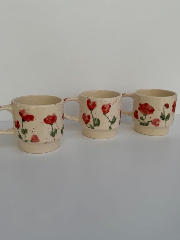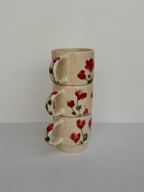 Taza apilable flores rojas